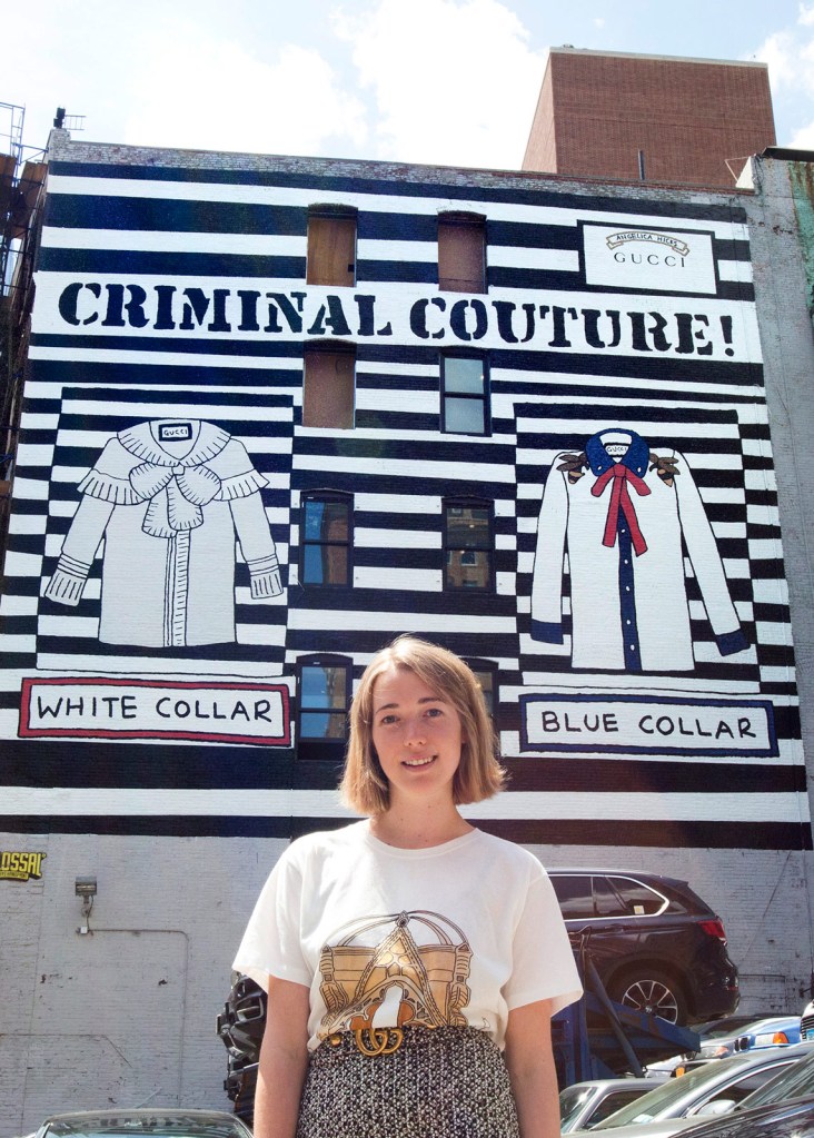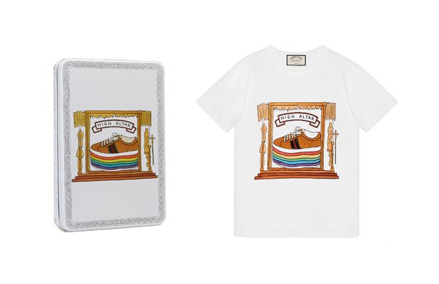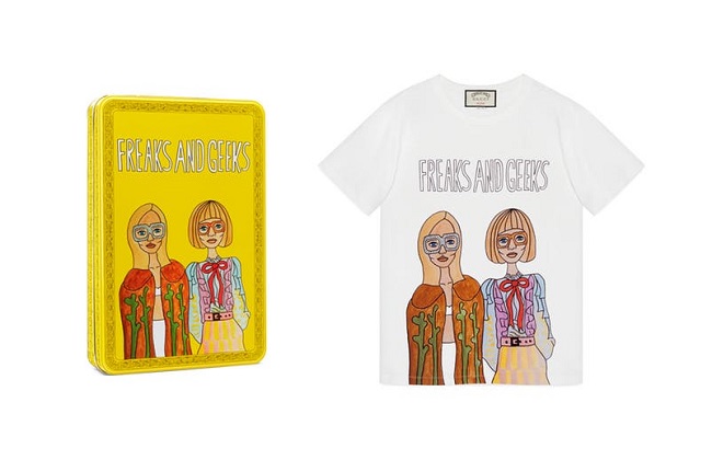 In 2017, Gucci launched a line of t-shirts in collaboration with British artist Angelica Hicks. The t-shirts were an exclusive e-commerce release.